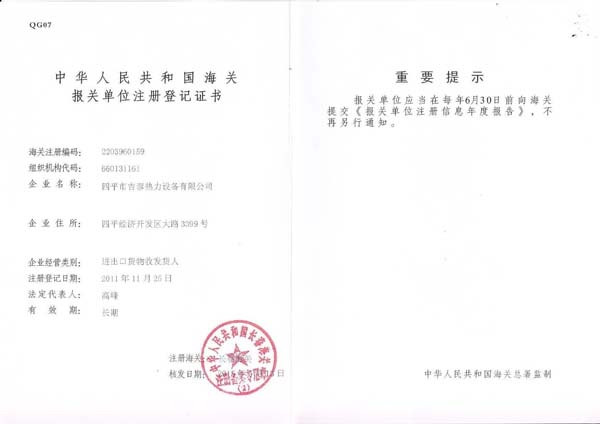海關(guān)報(bào)關(guān)單位注冊(cè)登記證書
